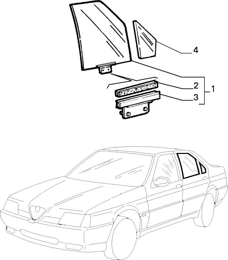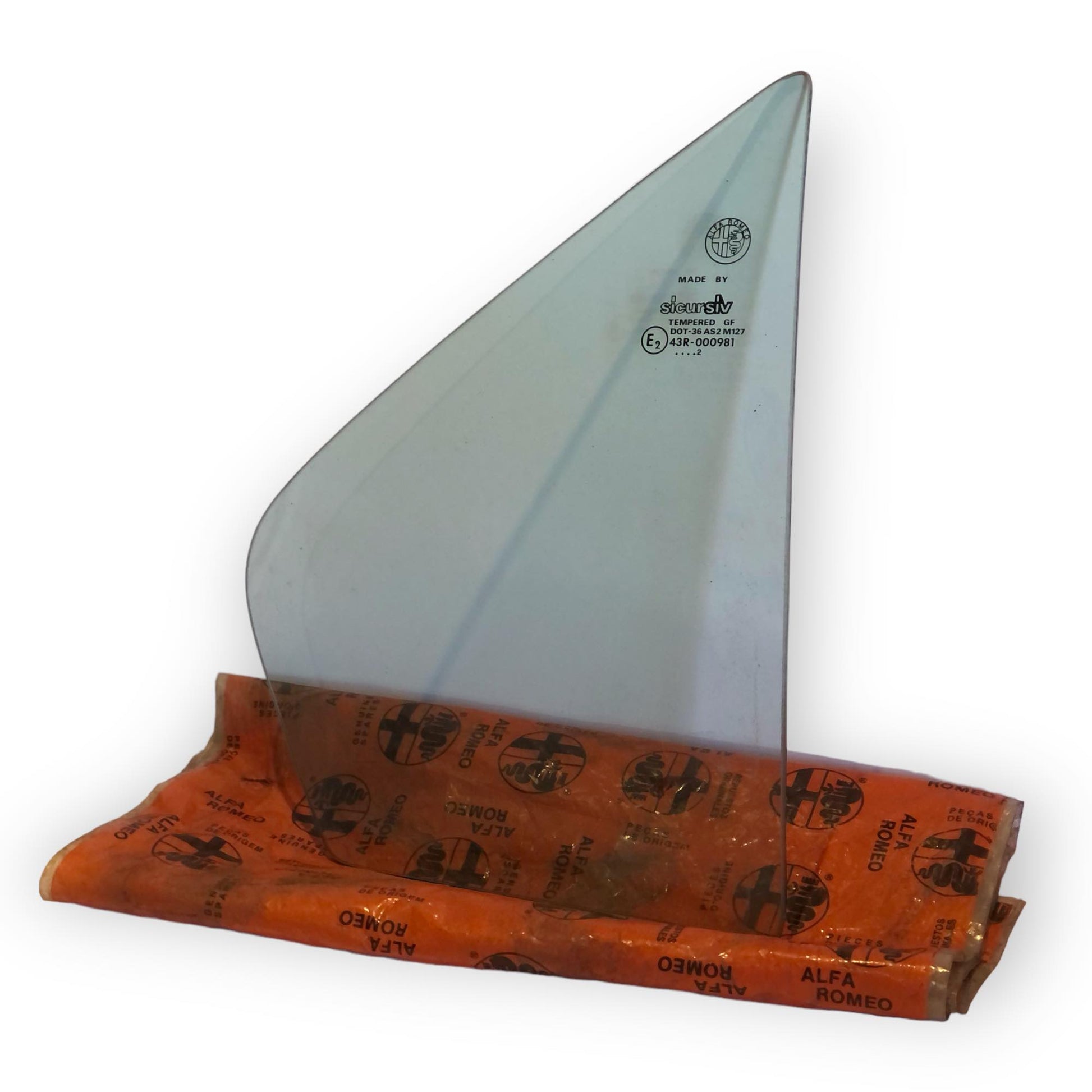 Rear door quarter light glass for Alfa Romeo 164. Offside DX.